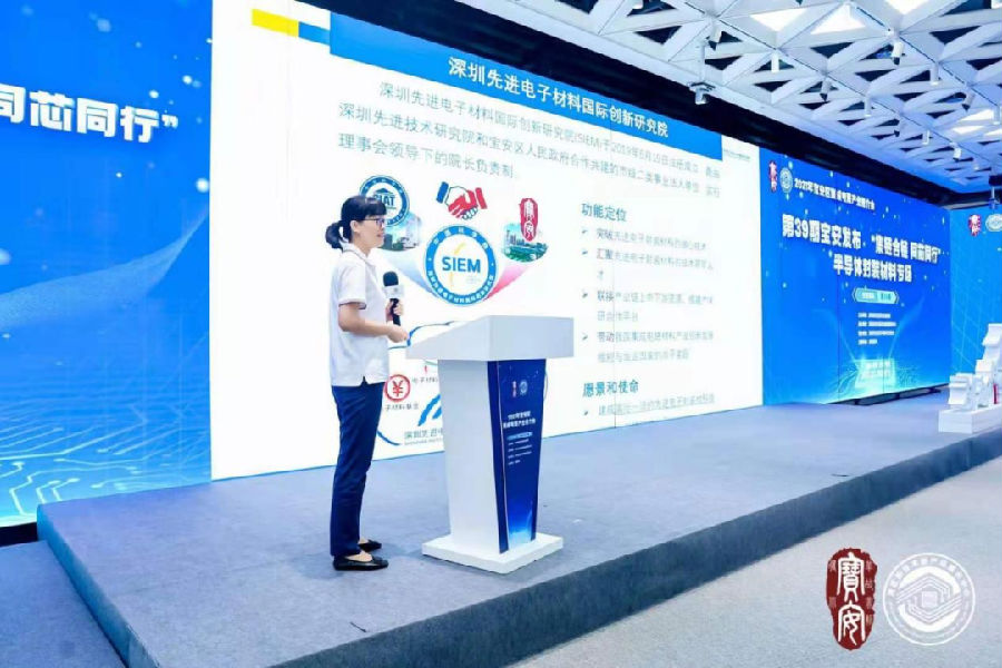 在本次活動中,深圳市先進電子材料國際創新研究院(以下簡稱“電子材料院”)和深圳市化訊半導體材料有限公司(以下簡稱“化訊半導體”)創新亮相第39期寶安發布半導體封裝材料專場,針對先進電子封裝中的絕緣膠膜和器件、電子材料與器件分析測試公共服務平臺及面向超薄芯片制造的臨時鍵合材料產業化與現場的企業進行了深入淺出的交流與互動,在讓更多人走進了解兩家會員單位的同時,也向眾多寶安半導體相關企業分享了集成電路封裝前沿技術發展訊息,促進產業信息互聯互通。同時寶安區5G產業技術與應用創新聯盟的會員單位深圳市博敏電子有限公司也在3樓設立了展臺,向市區領導及集成電路行業同仁展示了公司硬核產品。